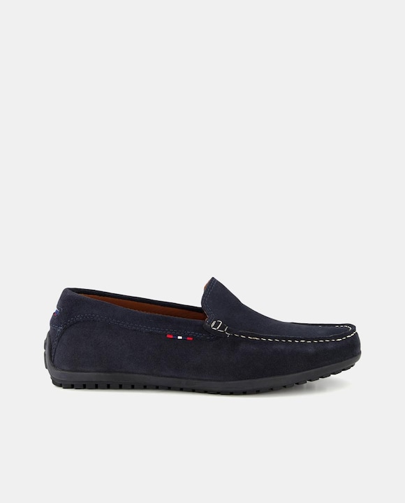 Mocasín liso de serraje con piso de goma