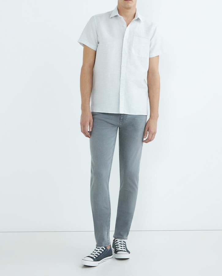 Camisa manga corta de hombre de lino algodón rayas