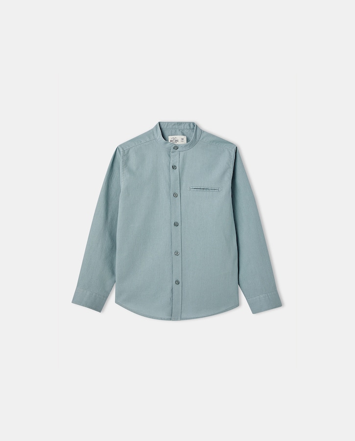 Camisa gasa de niño con cuello mao en verde