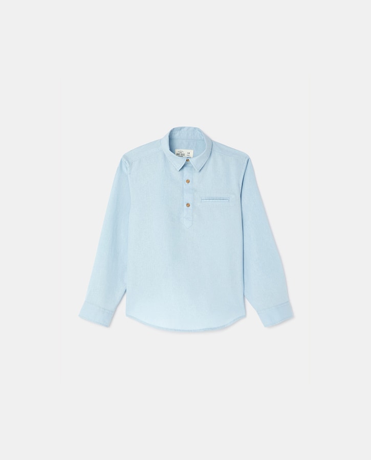 Camisa lino polera de niño en azul
