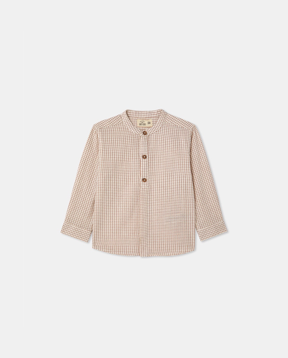 Camisa gasa con cuello mao cuadros de bebé niño en naranja