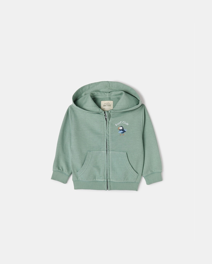 Sudadera capucha estampada efecto lavado de bebé niño en verde