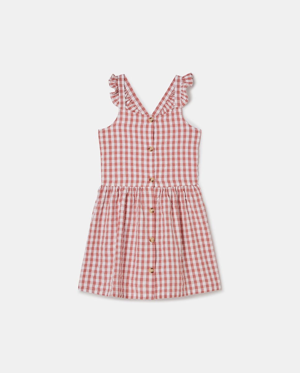 Vestido tirantes seersucker cuadros de niña