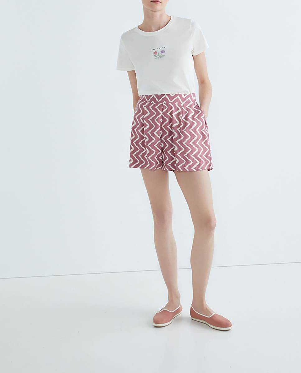 Short básico de mujer estampado étnico granate