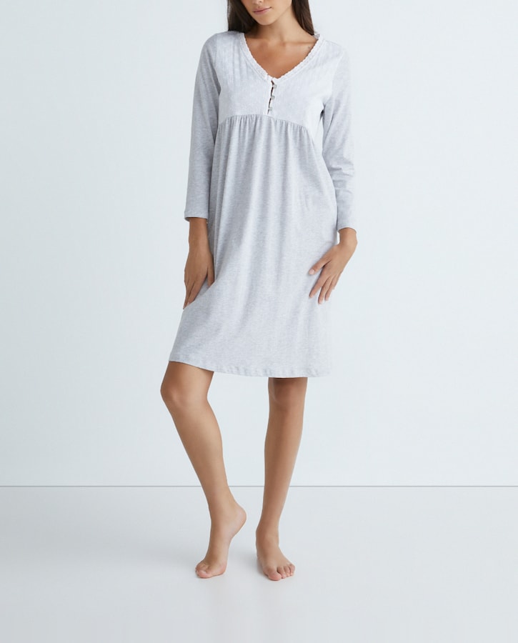 Camisón mujer manga larga canesú plumeti