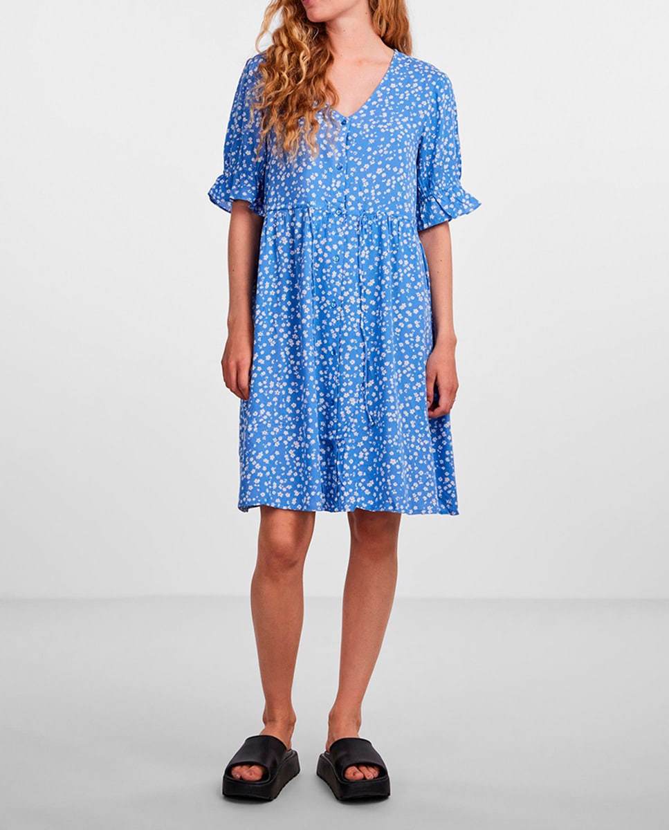 Vestido corto de manga corta con botones