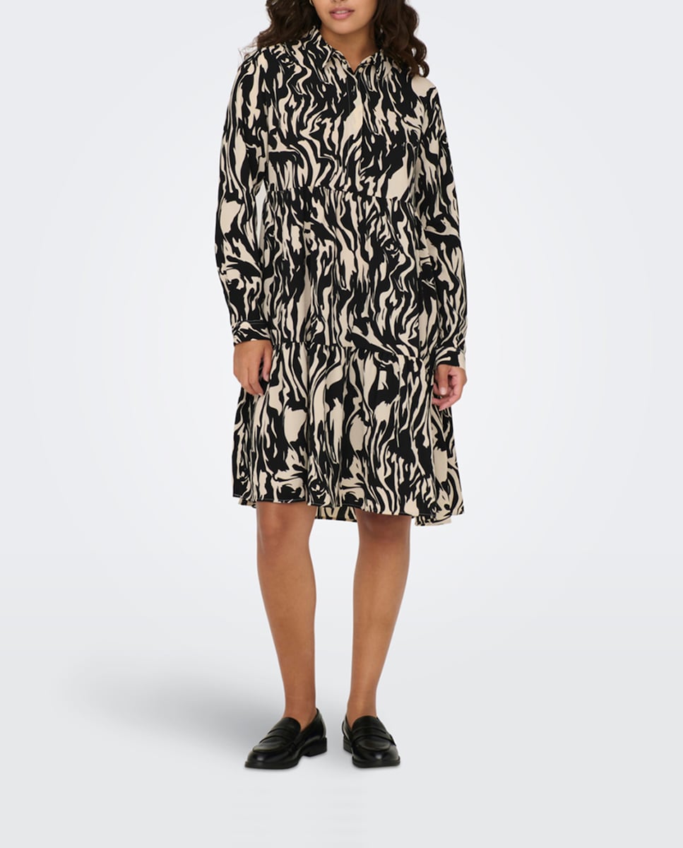 Vestido camisero corto estampado de corte holgado con volantes