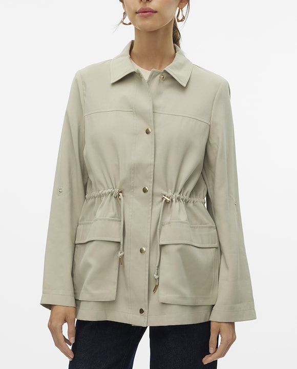Parka con cuello camisero de mujer con mangas ajustables