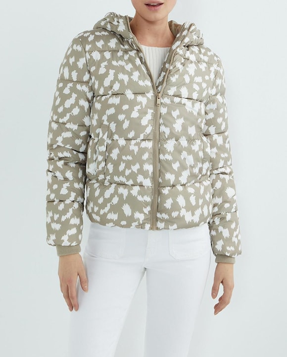 Abrigo plumífero acolchado con cremallera y capucha de mujer sostenible