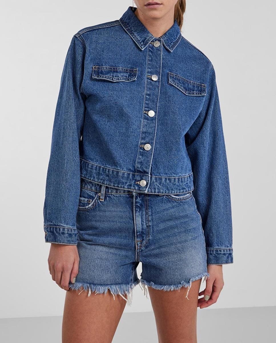 Chaqueta cazadora vaquera de mujer abotonada corta