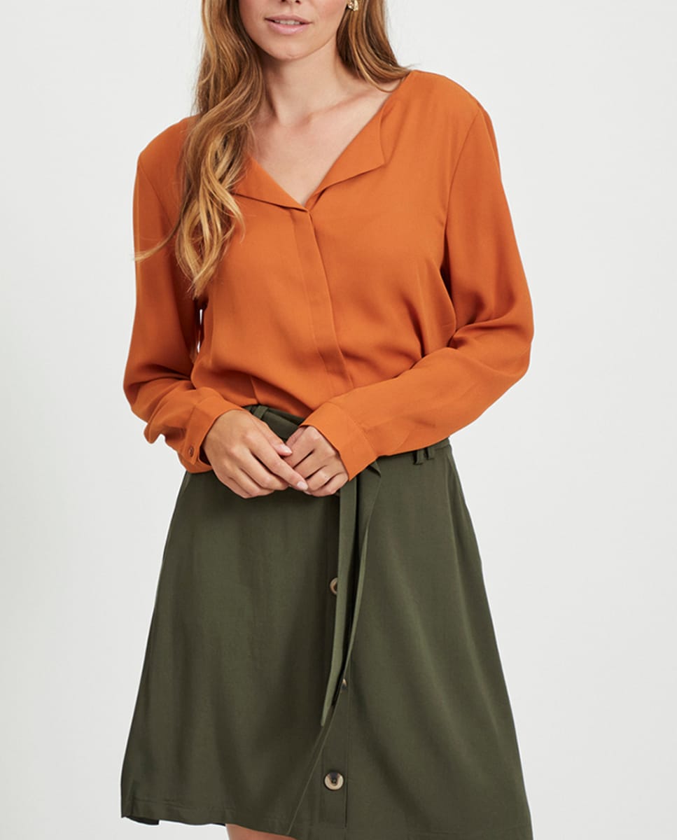 Camisa de manga larga de mujer con escote en pico