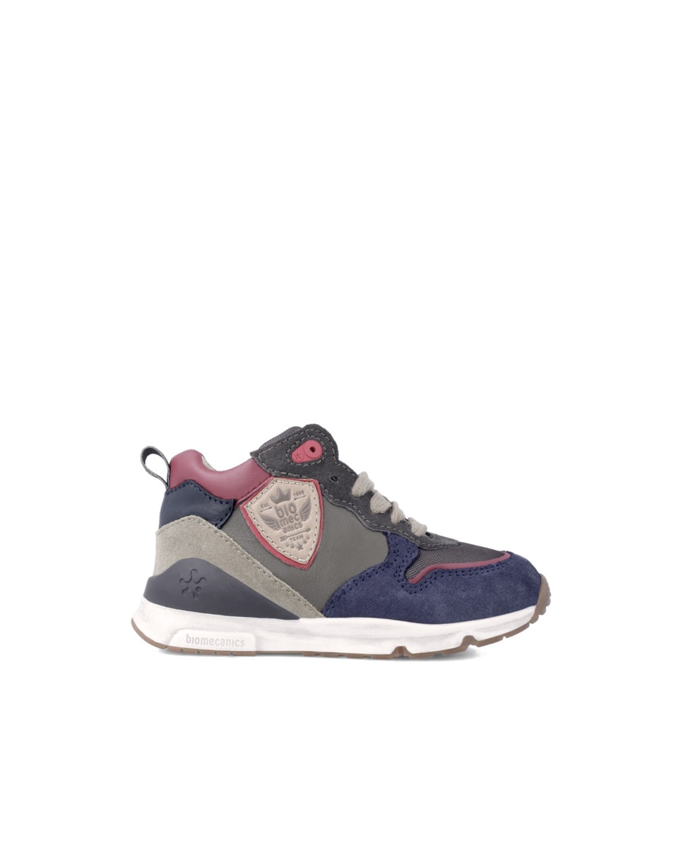 Zapatillas de niño tipo running bajas en piel con detalle de escudo y cremallera