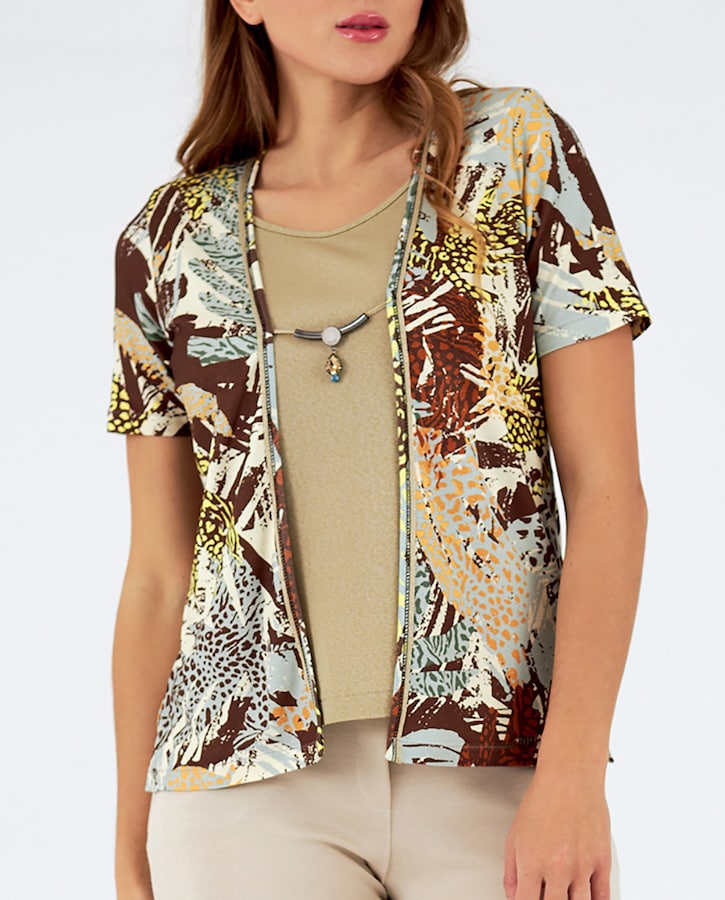 Conjunto simulado de mujer cuello redondo manga corta