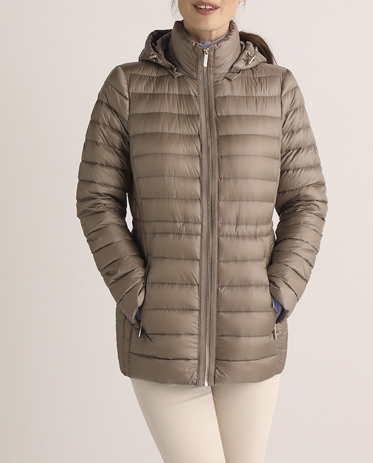 Plumífero corto de mujer con capucha
