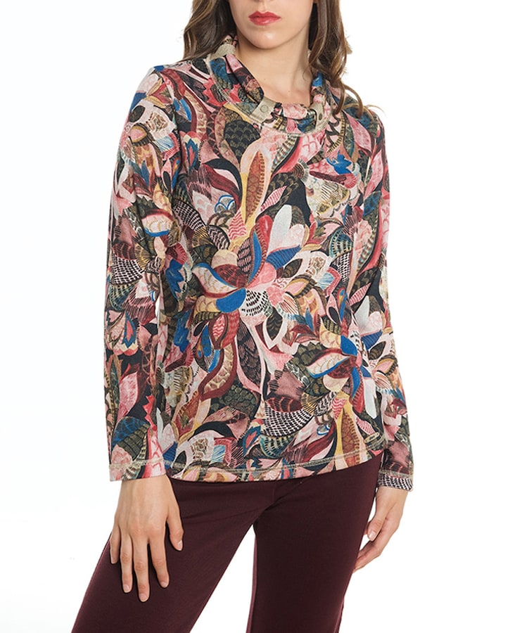Jersey de mujer estampado y cuello fantasía