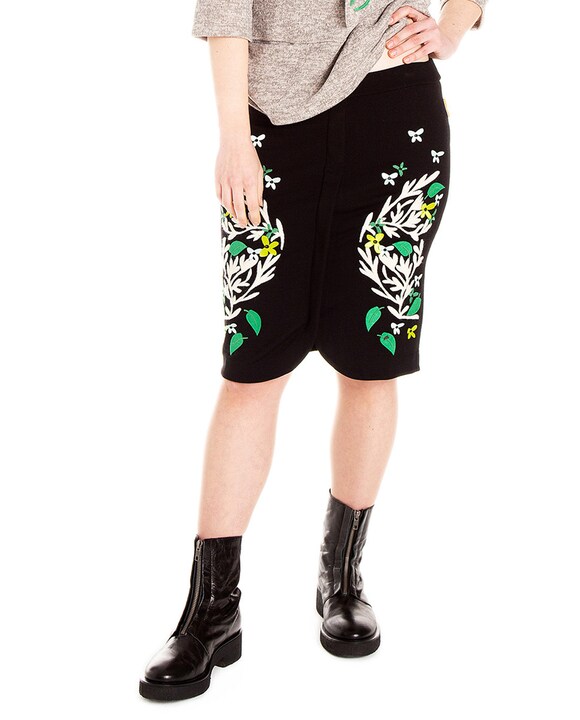 Falda tulipán con bajo redondeado y bordado de puntada