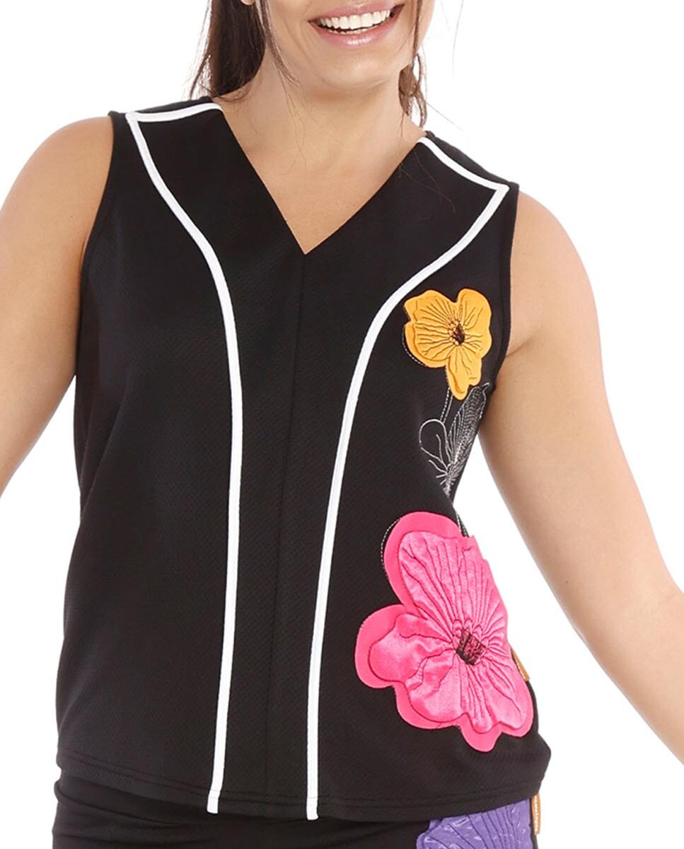 Top con escote en pico y bordado en el delantero