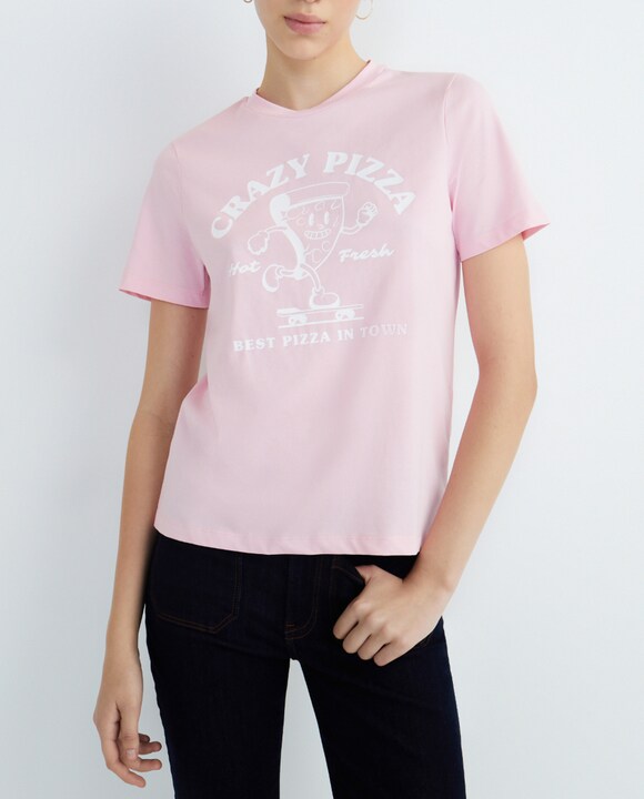 Camiseta con dibujo, manga corta de mujer