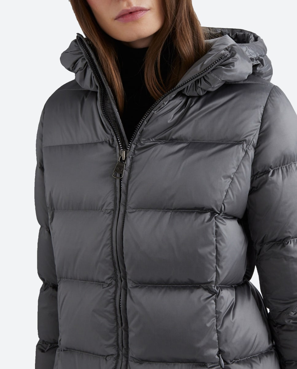 Abrigo de mujer 3/4 de plumón con capucha y pelo sintético