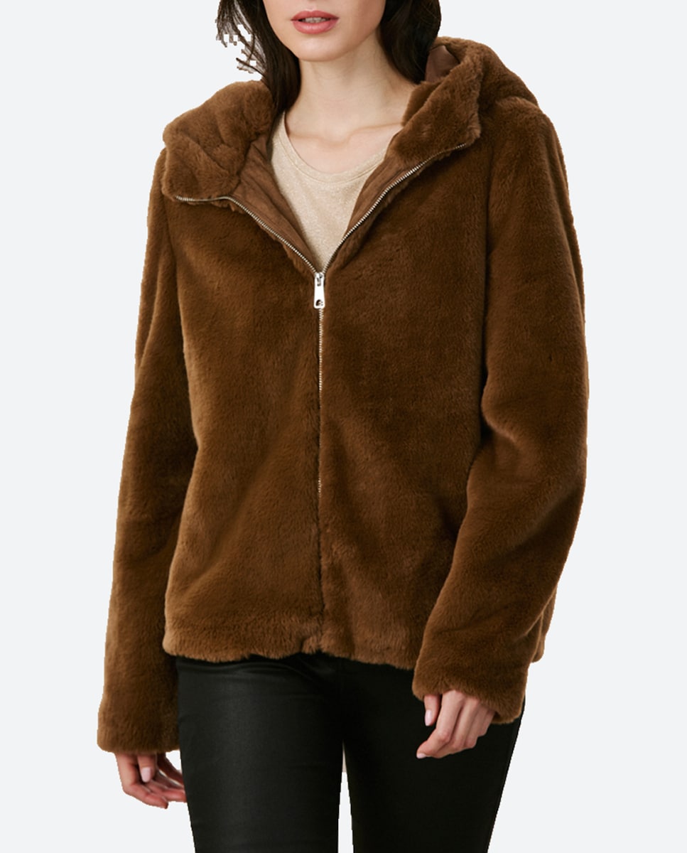 Abrigo de pelo sintético de mujer con capucha