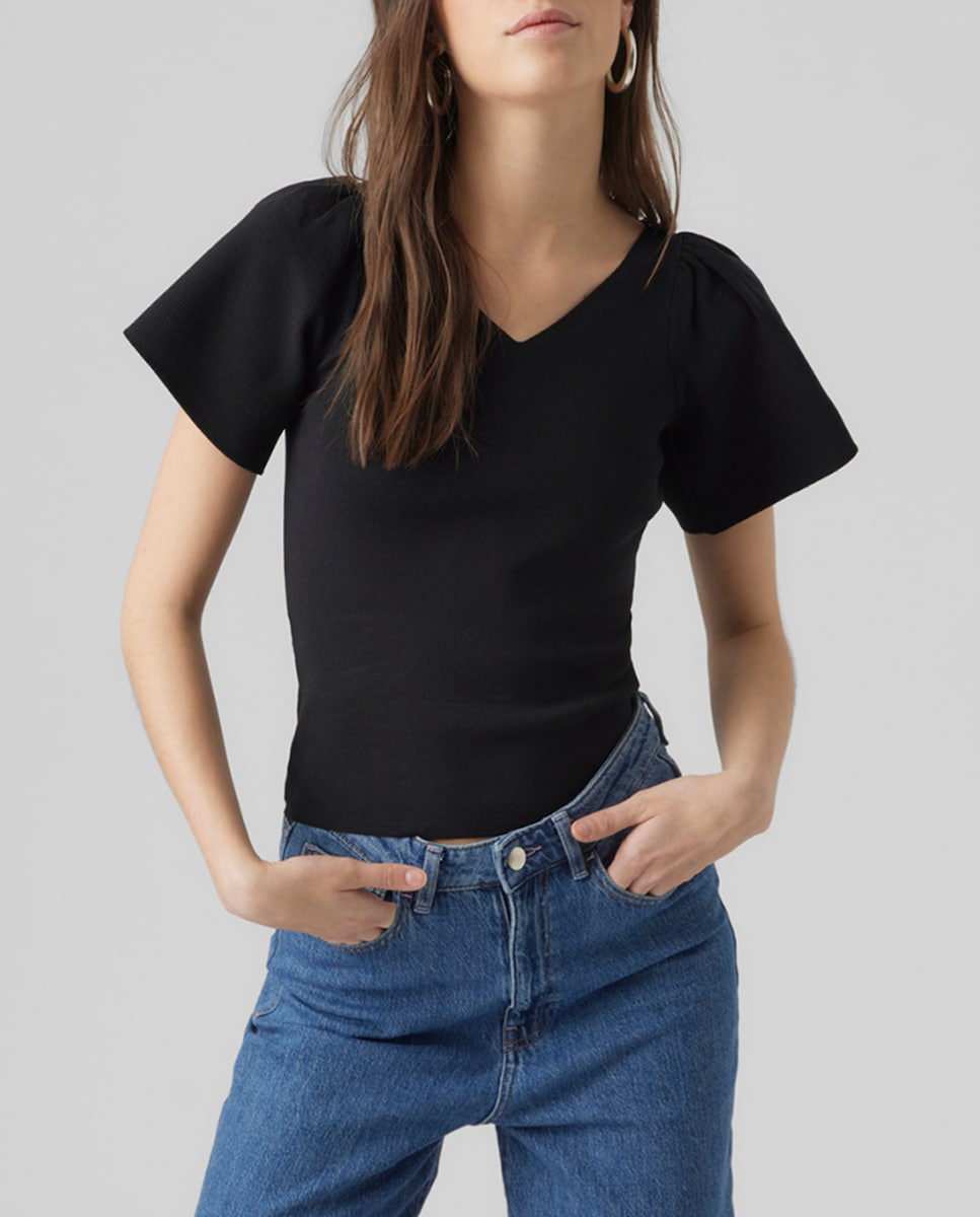 Top de mujer ajustada de manga corta