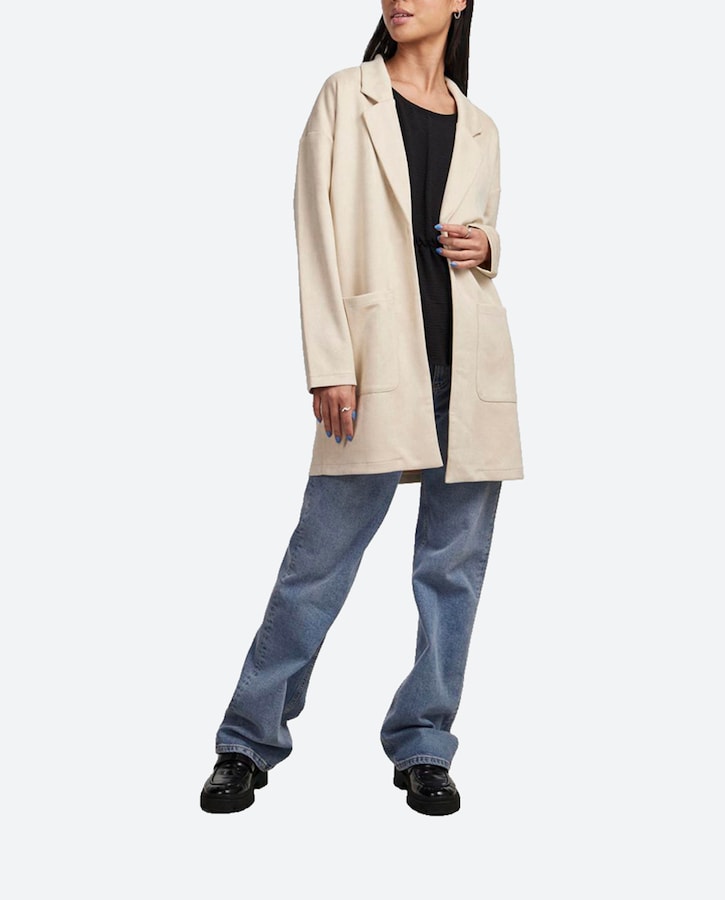 Abrigo de mujer ligero de antelina con mangas 3/4 y cuello de solapa